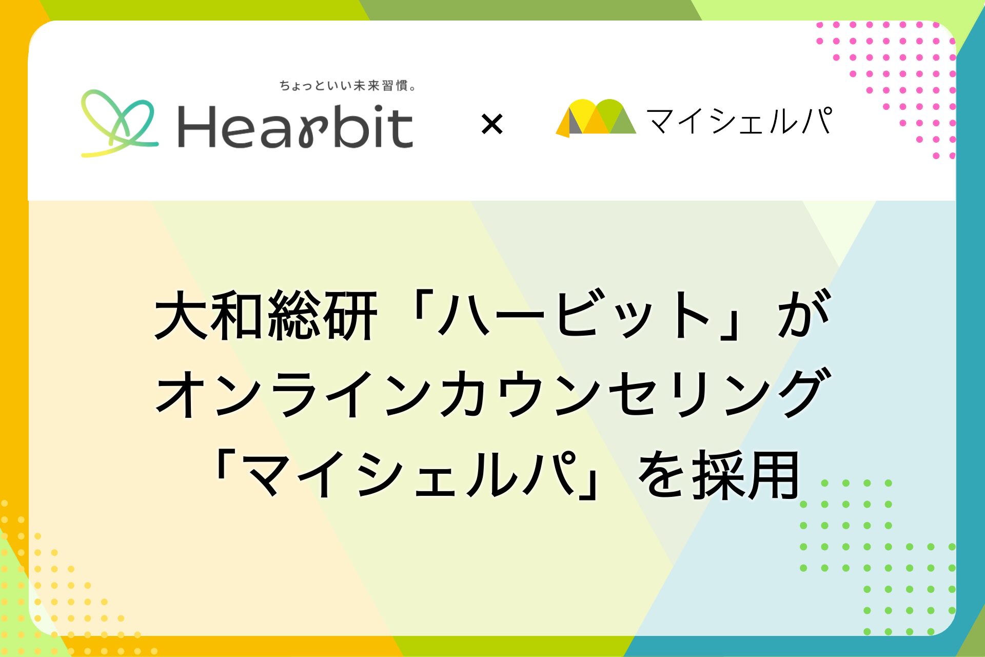 オンラインカウンセリングを提供する株式会社マイシェルパ(以下、当社)は、株式会社大和総研(以下、大和総研)が健康保険組合向けに2025年10月より提供を開始する、従業員の健康づくりを支援する新サービス「ハービット」に、法人向けメンタルヘルスケア支援サービス「マイシェルパ」を提供します。