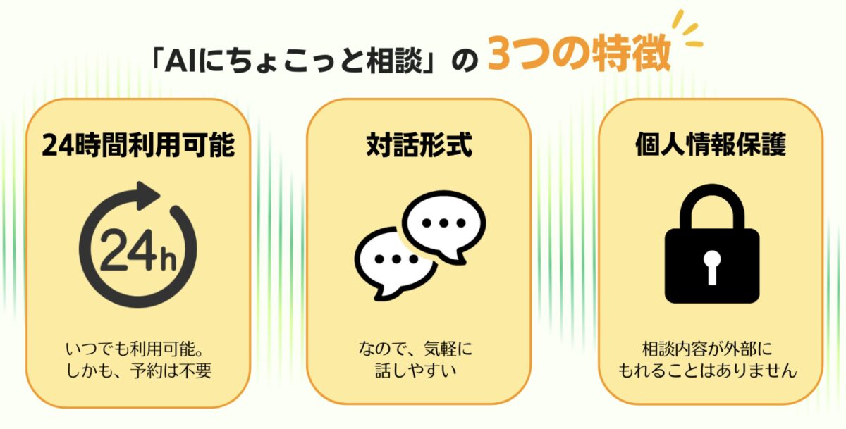 当社は、日常のモヤモヤをその場で相談でき、悩みの整理や言語化を24時間サポートする「AIにちょこっと相談」の提供を開始しました。
